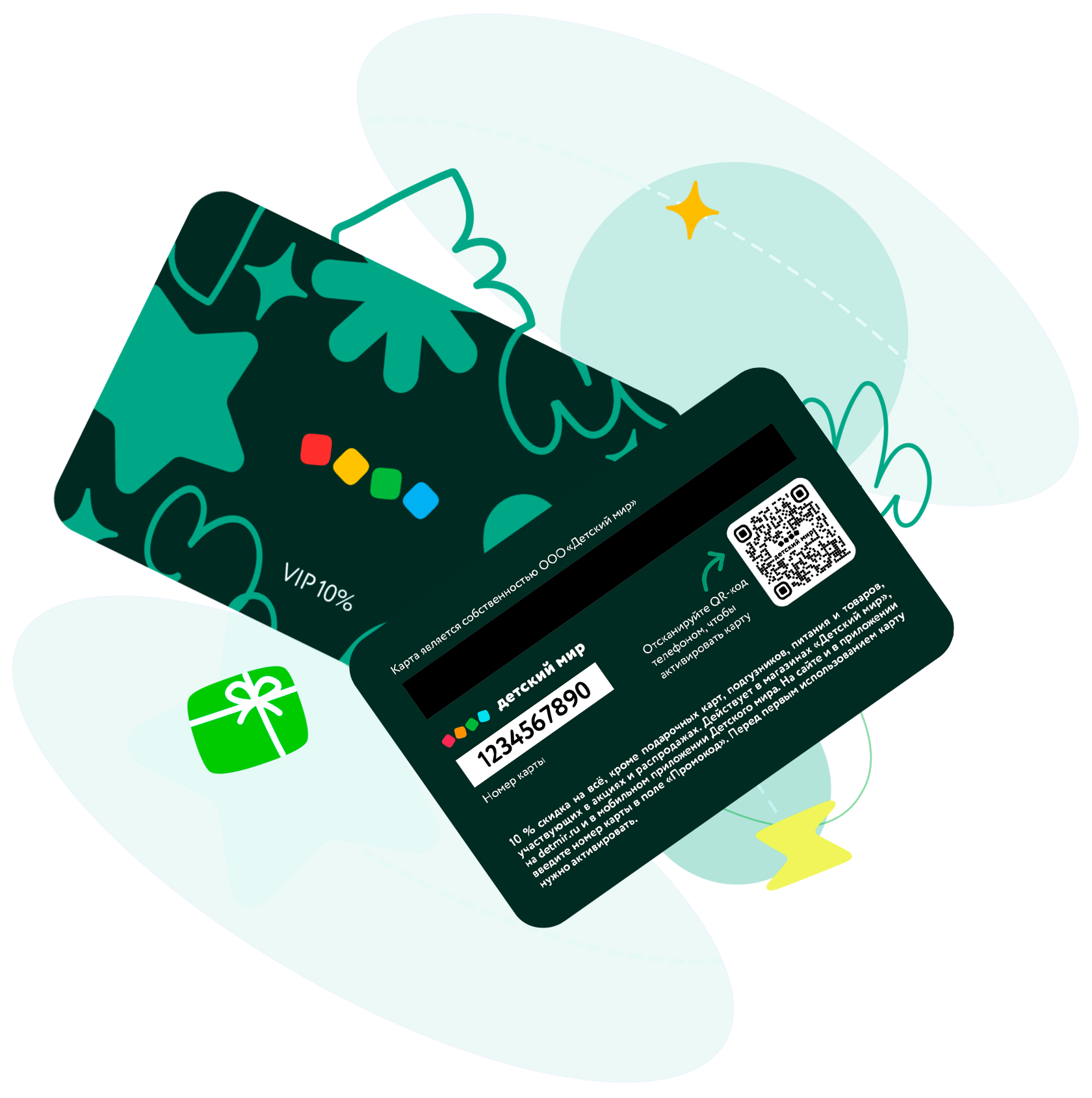 VIP-карта даёт скидку 10 % на все товары, кроме подарочных карт, подгузников, питания и товаров, участвующих в акциях и распродажах.