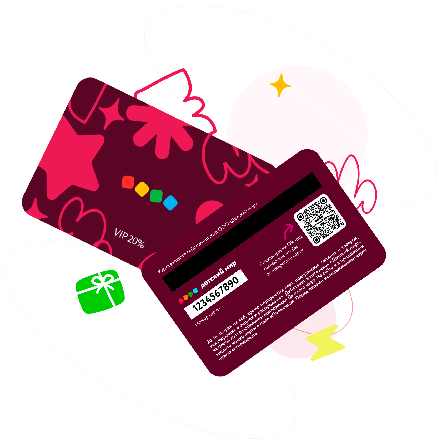 VIP-карта даёт скидку 20 % на все товары, кроме подарочных карт, подгузников, питания и товаров, участвующих в акциях и распродажах.